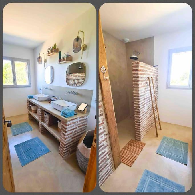 La villa Falcone Marinu a été réalisée en pierres et bois, associés au travail du fer. Sa charpente traditionnelle en bois vieillie donnera un volume superbe à l’espace de vie. Sa décoration bohème chic bord de mer la rend douce, chaleureuse et estivale à la fois. Son sol et sa salle de bain en béton ciré la modernisent.